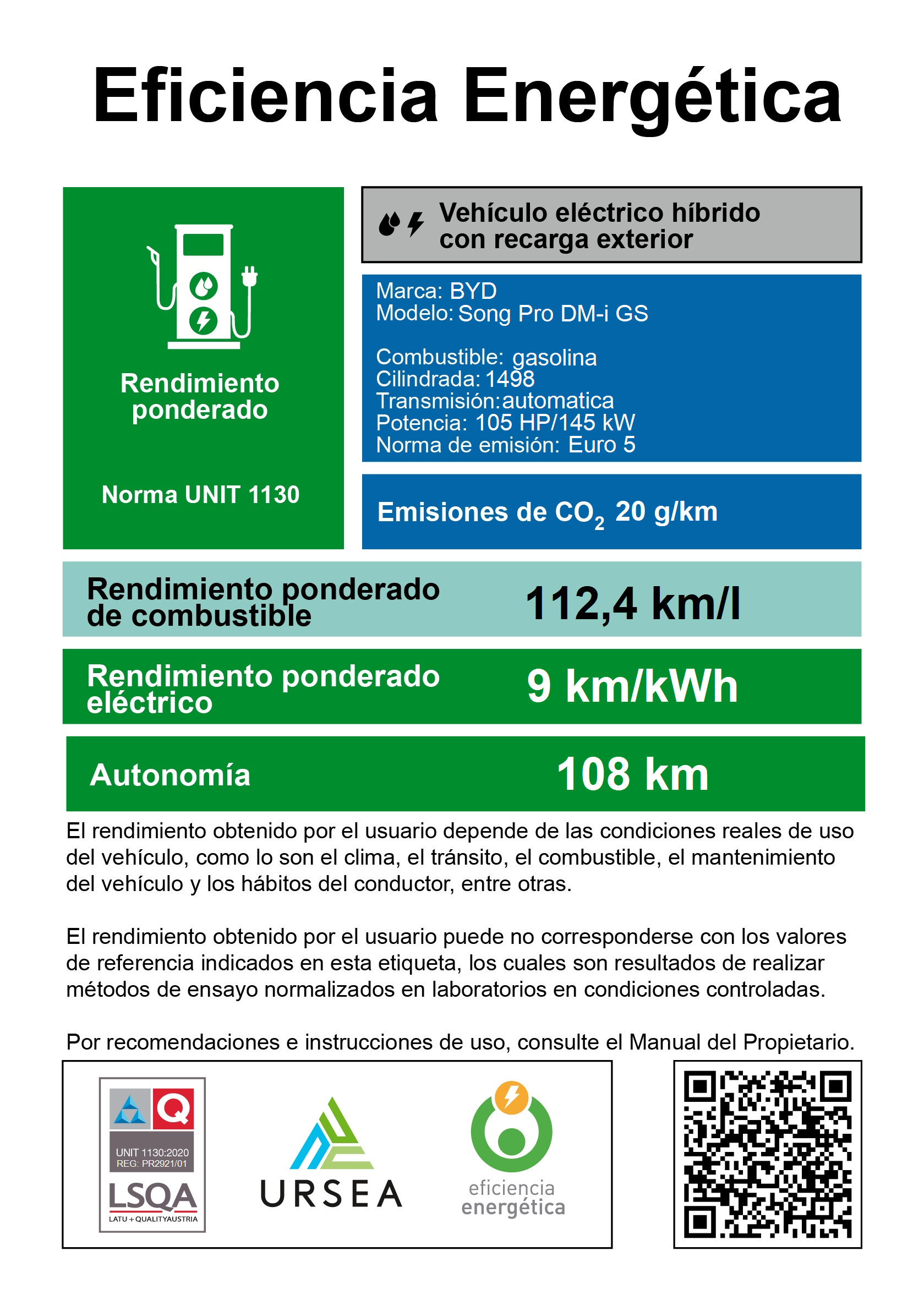 Motor EV 150 kW, Llanta 19", Freno eléctrico, Cruise Control Adaptativo, ADAS, Detector punto ciego, Control de Tracción, Pantalla táctil de 12.8", Cámara 360°, Asientos conductor con regulación eléctrica, Recarga por inducción, Baúl eléctrico, Arranque remoto del auto y/o del aire, Monitoreo presión de neumáticos, Autonomía EV: 105 km (NEDC), Blade Battery (18,3 kWh)